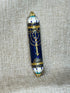 A striking decorative metal Mezuzah case crafted from strong, high-quality metal, featuring a unique Menorah design. Finished in a rich blue tone with delicate gold accents, it offers a luxurious look and a bold presence on the doorframe.